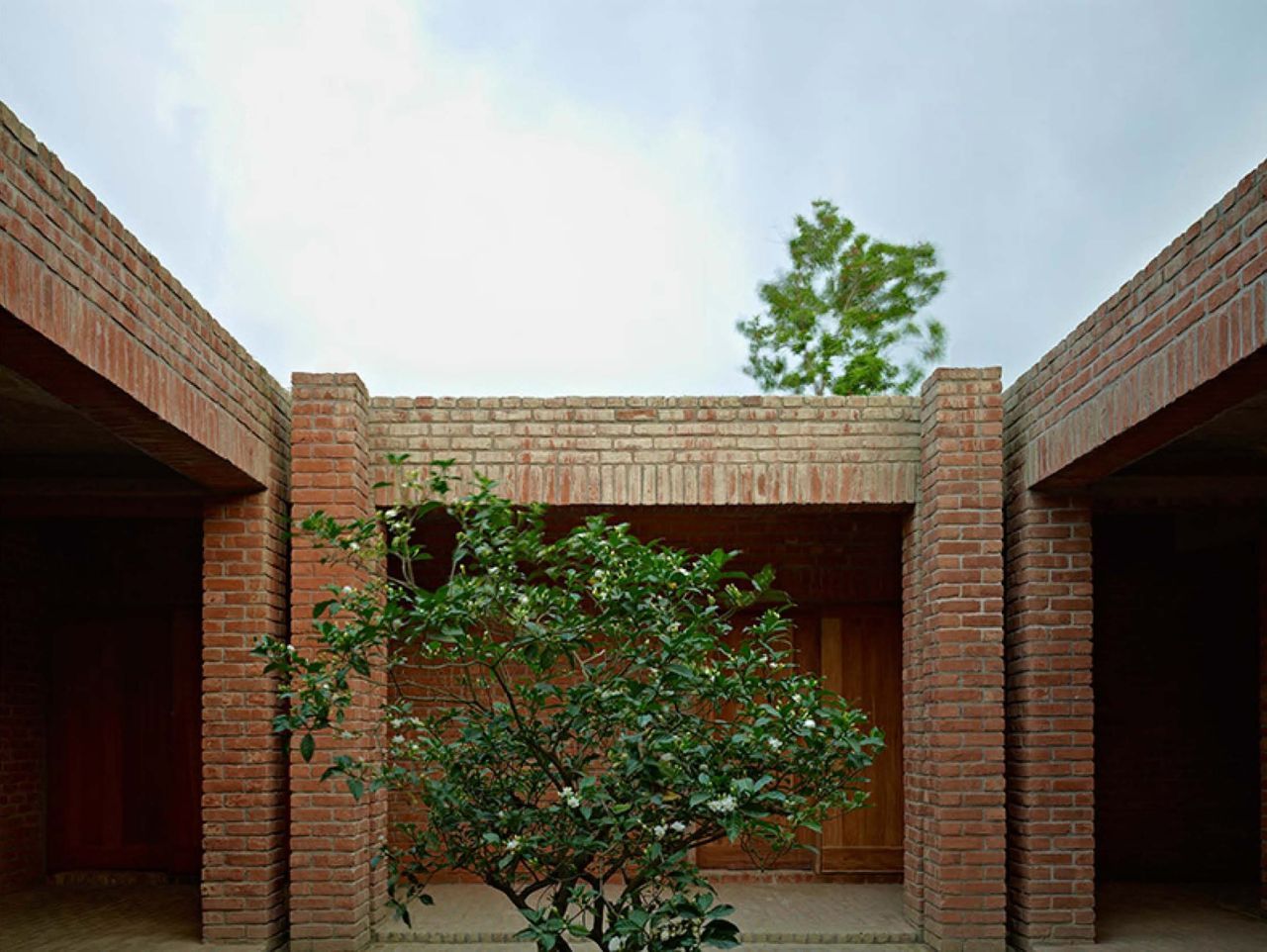 The complex is predominantly constructed using local hand-made bricks. The choice not only references local tradition and history, but was also borne out of economic constraints and the wish to utilise local manufacture. Reinforced concrete elements are utilised where necessary to due to its location in this earthquake prone region. All surfaces are left unplastered and unpainted in order to minimise maintenance costs.