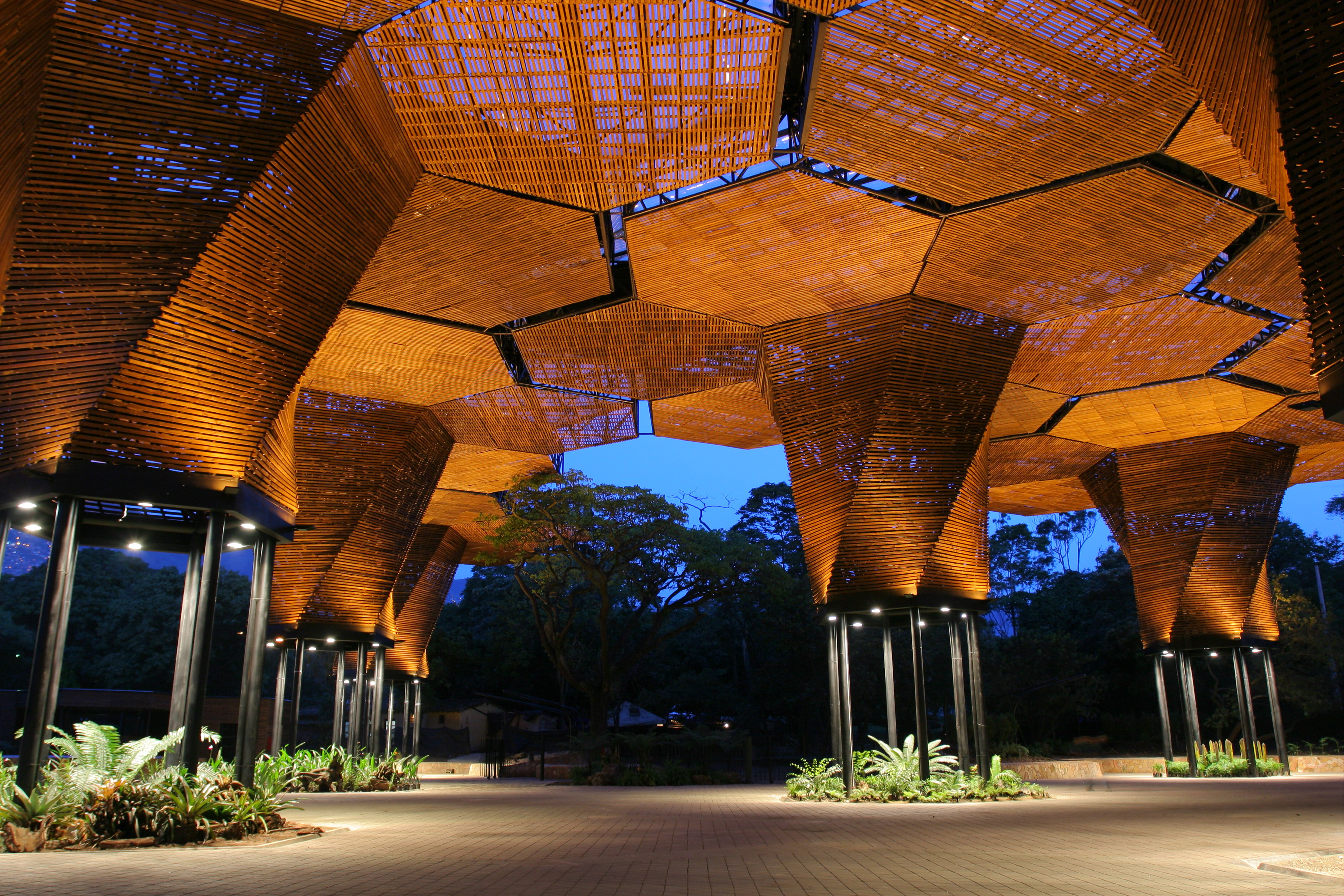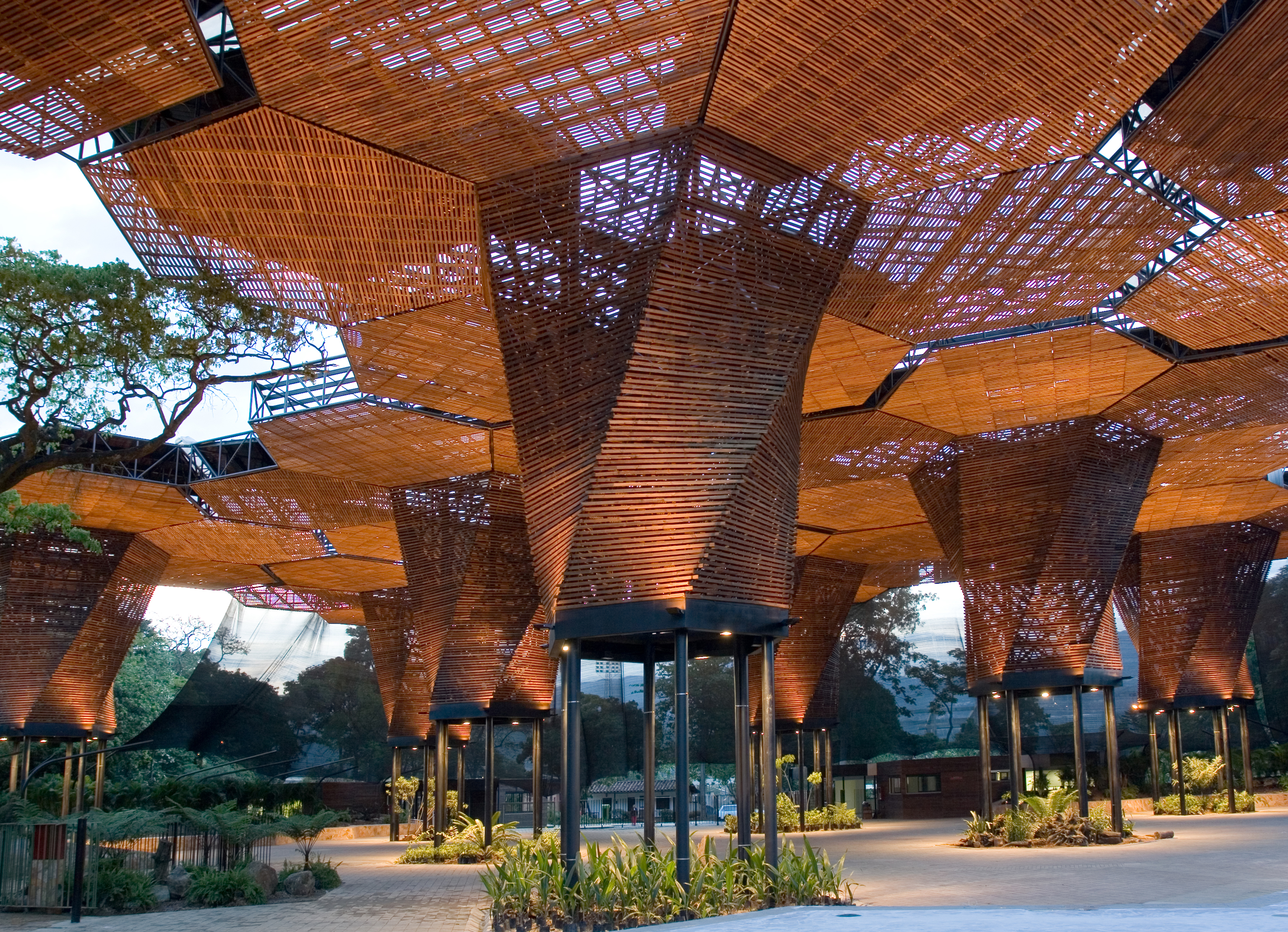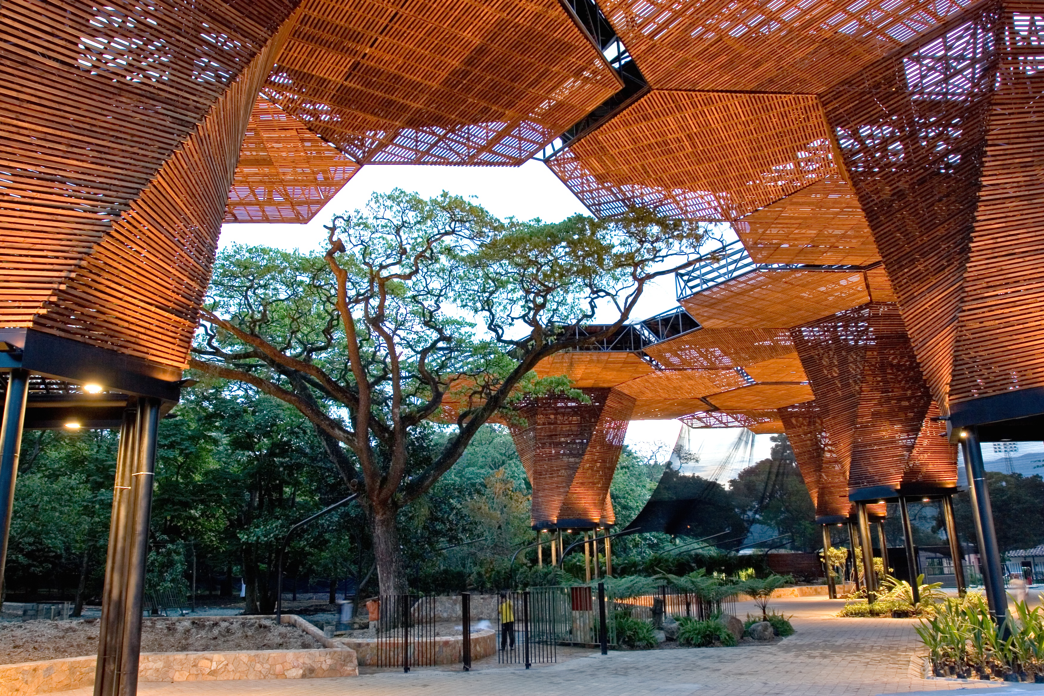 The orchid is the national flower of Colombia. In the Botanical Gardens of Medellín, woven into the vegetation, is the Orquideorama, the result of an architectural ideas competition in 2005. The winning design was a collaboration between Plan:b Arquitectura (Alejandro Bernal and Felipe Mesa) and JPRCR (J. Paul Restrepo y Camilo Restrepo). The jury were impressed by the projects reference to nature, abstraction and aesthetic clarity; an idea capable of becoming a symbol for the city of Medellin.